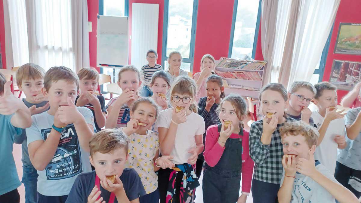 A la maternelle, les élèves se sont intéressés à la fabrication du miel par les abeilles également à partir de documentaires (livres, vidéos…). Ils ont goûté différents miels (lavande, châtaignier, toutes fleurs…) et ont apprécié les différentes textures et saveurs. Les plus petits ont accompagné leur dégustation de fromage de chèvre et de fruits. Tous se sont régalés !